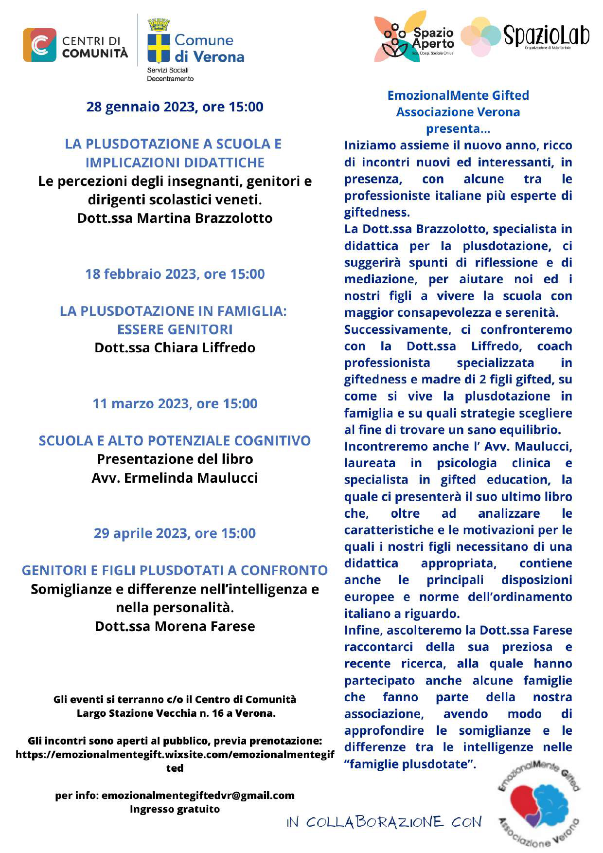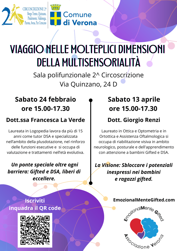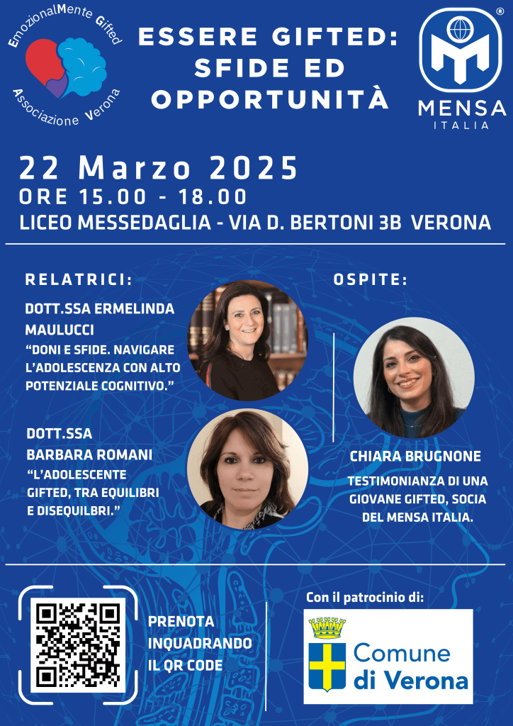 Organizzato da EmozionalMente Gifted Associazione Verona e Mensa Italia, con il patrocinio del Comune di Verona, l’evento vedrà la partecipazione delle relatrici: