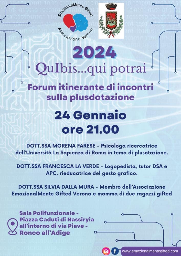 L’associazione EmozionalMente Gifted con il patrocinio e contributo del @comune_di_verona è fiera di invitarvi al ciclo di conferenze sulla #plusdotazione ospitate presso il prestigioso @liceomessedaglia di #Verona.