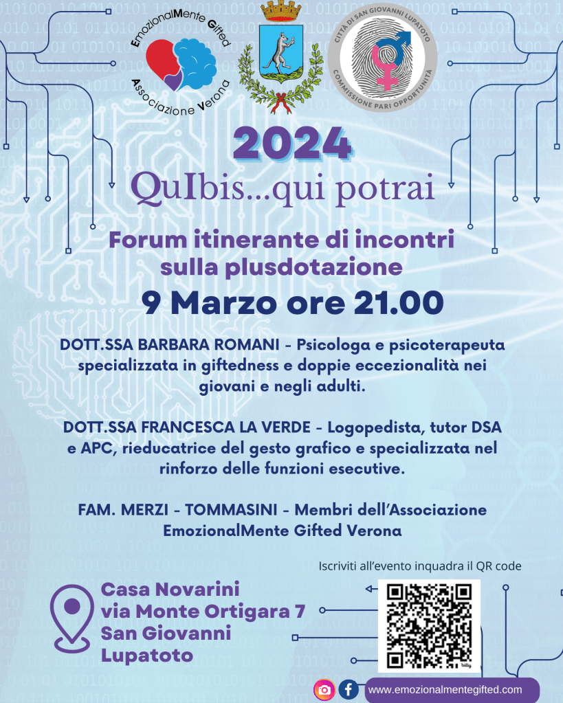 Serie di incontri con specialisti del settore sul tema plusdotazione realizzati con la Seconda Circoscrizione di Verona grazie alla collaborazione con la 2^ Circoscrizione.